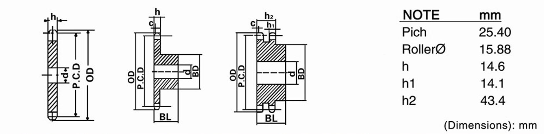 | Số răng | OD | P.C.D | Bore: d |
